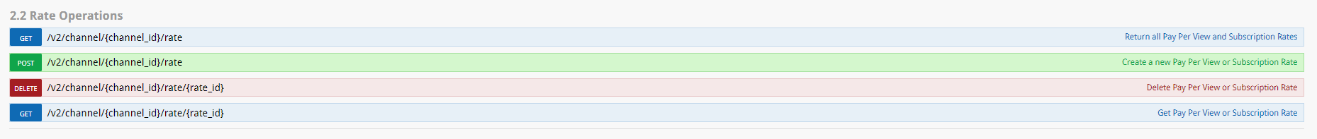 API calls are structured in 10 main sections and are then divided into sub-sections. For instance, below you have the list of available API calls to monetize a VOD: