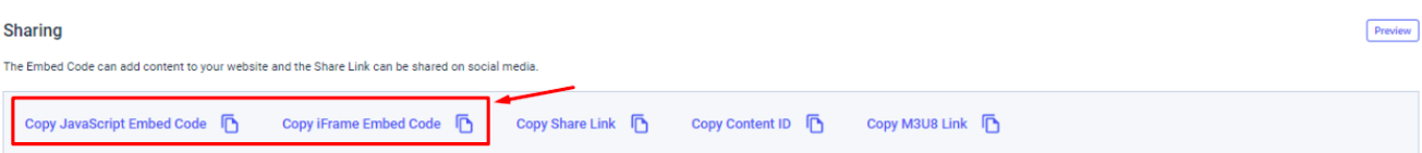 3. Go to your Dacast account and choose the content that you want to embed to your WordPress site. Try it by using copying Iframe/Javascript embed codes from the sharing tab.