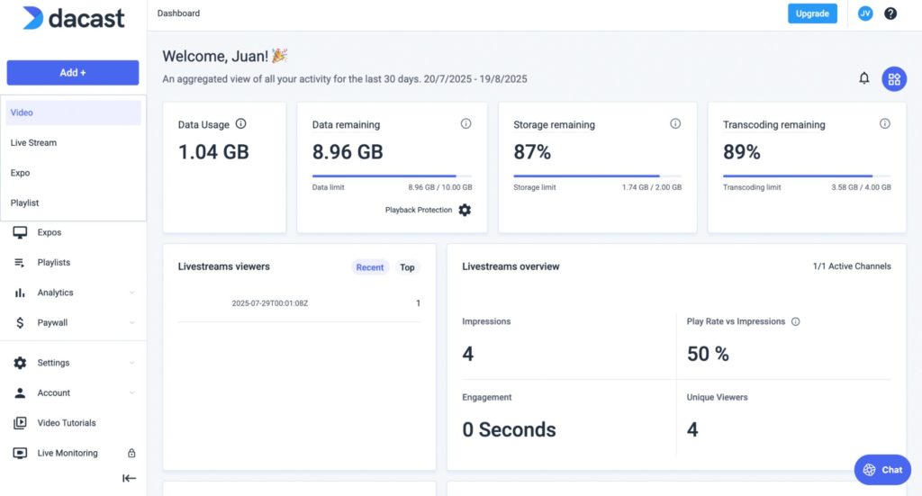 - Use Dacast’s support. Migration specialists can help with bulk uploads, API integration, and troubleshooting.