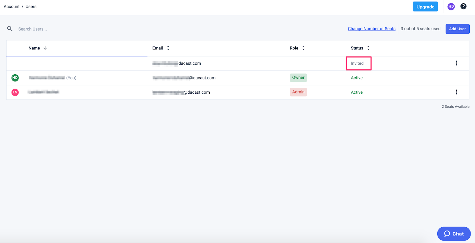 Based on your Dacast plan, you will have different numbers of team member seats per default: