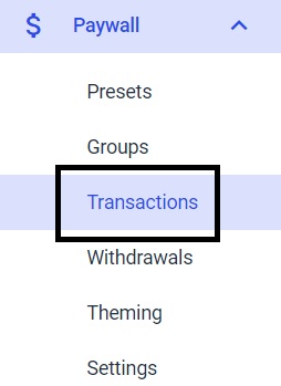 Once youre in the Dacast dashboard, please go to the Paywall section. Click on it and choose Transactions. Here you will see all transactions on your account.